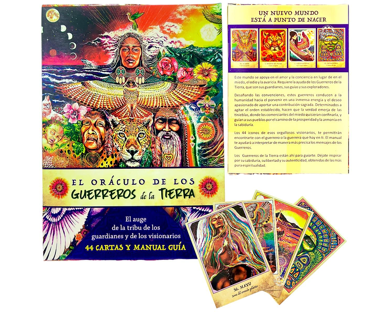 Estas cartas oraculares, hablan del nuevo mundo que esta por nacer, este mundo descansa en el amor y la conciencia en lugar de en el miedo, el odio y la avaricia. Requiere la ayuda de los Guerreros de la Tierra, que son los guardianes, los guías y los exploradores. Desafiando las convenciones, estos guerreros conducen a la humanidad hacia el porvenir con inmensa energía y un deseo apasionado de aportar una contribución sagrada. Determinados a agitar el orden establecido, hacen que la verdad emerja de las tinieblas, donde los comerciantes del miedo quisieran confinarla, y guían a sus pueblos por el camino de la prosperidad y la armonía en la sabiduría.