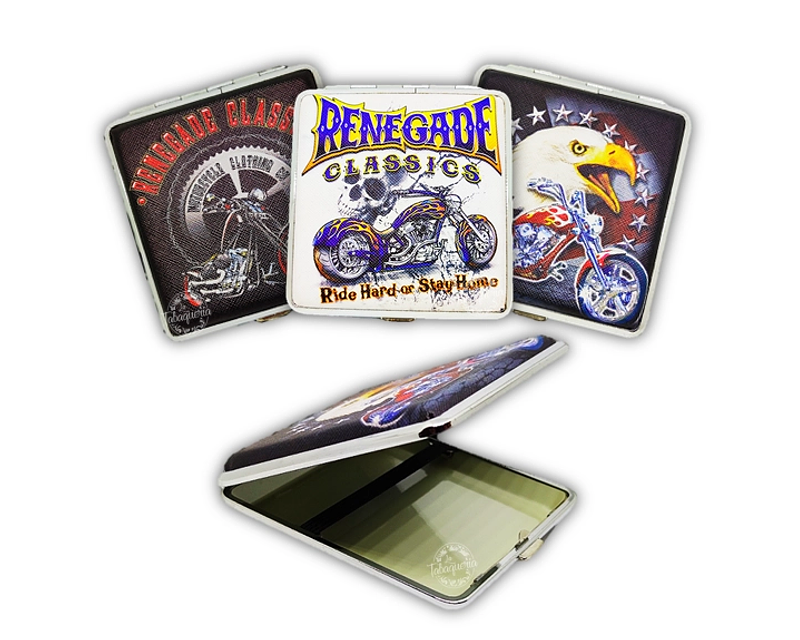 Hermosos diseños y colores, alusivos al rock, practica y elegante, con interior fácil de limpiar y exterior forrado en eco cuero. Ideal para mantener tus cigarrillos ordenados.