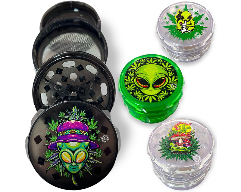 Exclusivos Diseños Alien, con variedad de colores y figuras, Que le brindan un perfecto triturado al hacerlo rotar con las manos.