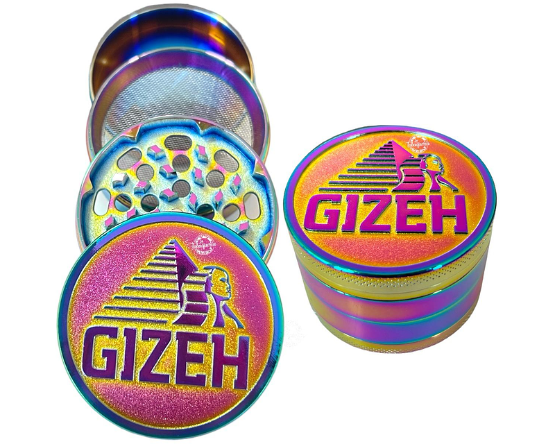 Exclusivo moledor metalico Tornasolado Gizeh Original de 60mm. Brindan un perfecto triturado al hacerlo rotar con las manos.