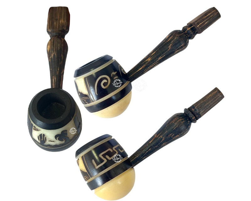 Exclusiva Pipa de madera de Tagua y palo de chonta, con variedad de diseños, incluye rejilla, hecha de un material resistente a altas temperaturas. Su superficie no desprende restos tóxicos, mantienen todo el olor y el sabor al fumar.