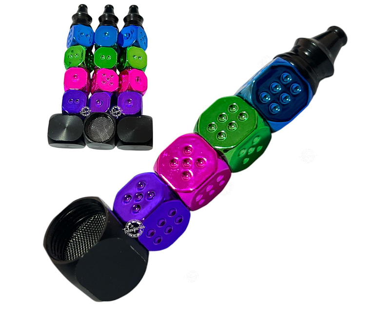 Exclusivas pipas Diseño Dados de colores desarmables de excelente calidad, hechos de un material resistente a altas temperaturas. Su superficie no desprende restos tóxicos, mantienen todo el olor y el sabor al fumar.