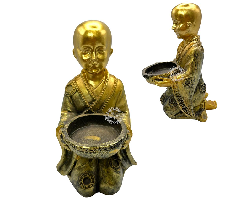Hermoso porta vela de buda en color dorado, que refleja la meditación y sabiduría, en diferentes posiciones.
