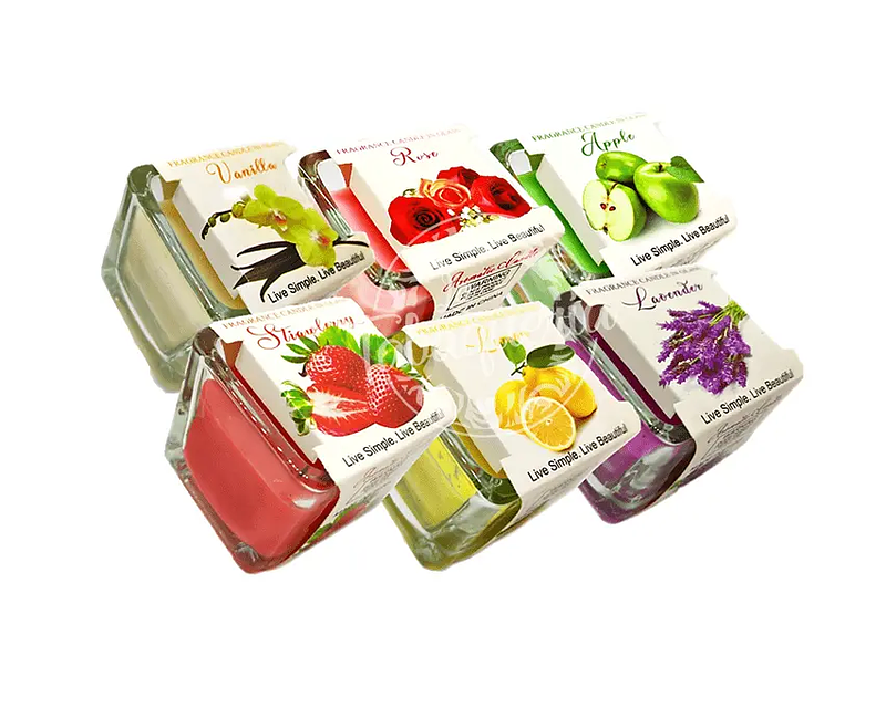Exclusivas mini velas pocillos cuadrados, con variedad de aromas ideal para la decoracion y ambientacion de tus espacios.